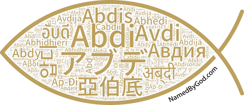 The name Abdi derives from the Hebrew root 'עַבְדִּי' (‘abdi’), meaning 'servant of Jehovah' or 'my servant.' This etymology reflects a profound connection to servitude and devotion to God, emphasizing humility and obedience in the relationship between humanity and the divine. Linguistically, the name is deeply tied to the Semitic tradition, where 'Abd' frequently signifies service or servitude, often in the context of religious or spiritual submission. Names incorporating 'Abd' are common in both Jewish and Islamic traditions, highlighting their shared cultural and linguistic heritage.