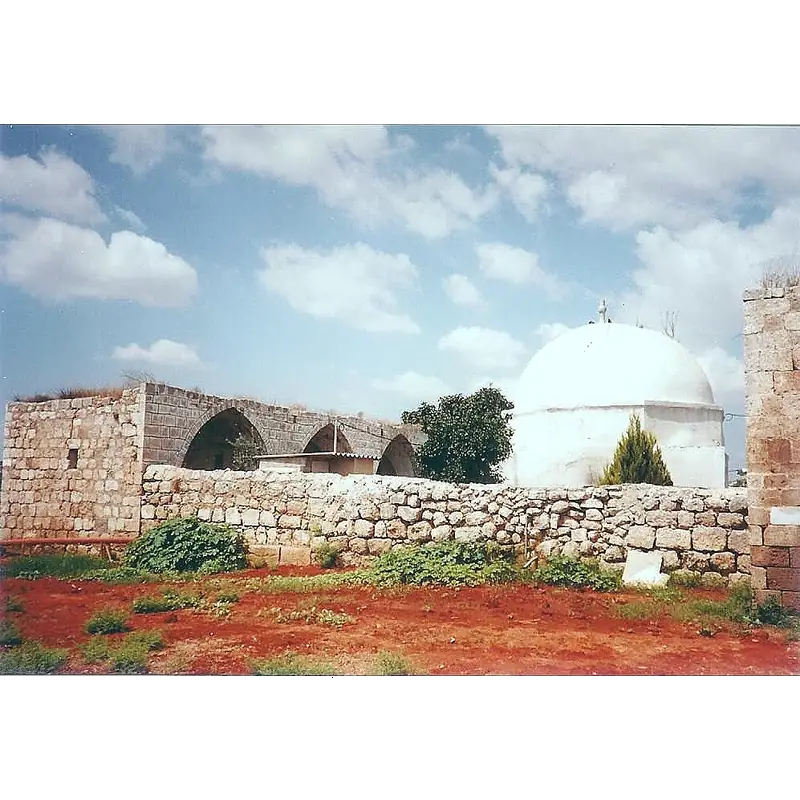 An exterior view of a Mamluk caravanserai complex, including the mausoleum of Nabi Yamin, traditionally believed to be the tomb of Benjamin, located outside Kfar Saba, Israel