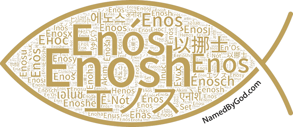 The name Enosh, also rendered as Enos, originates from the Hebrew word אֱנוֹשׁ (ʾĔnōš), which translates directly to "mortal man" or simply "man." This name carries profound theological and anthropological significance, as it reflects humanity's frailty and dependence on God. In linguistic terms, Enosh is related to the root word anash, which conveys weakness or frailty, underscoring the transient nature of human life in contrast to divine eternity. Historically, the name has been preserved across various cultures and languages, such as Arabic (’Anūsh or Yānish), Greek (Enṓs), and Ge'ez (Henos), each maintaining its connection to the theme of mortality and humanity's relationship with the divine.