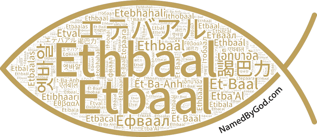 The name Ethbaal, derived from the Hebrew 'Ethba'al (אֶתְבַּעַל), translates to 'with Baal,' signifying a connection to the Canaanite deity Baal. Linguistically, the name reflects the cultural and religious syncretism of the ancient Near East, where devotion to Baal was widespread among Phoenician and neighboring Semitic peoples. The name also appears in alternate forms such as Ithobaal, which is used in Greek and historical accounts. This etymology underscores the intertwining of political and religious identities in the region, particularly among rulers who bore names invoking divine favor or affiliation.