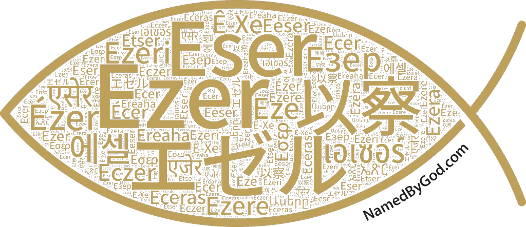 The name Ezer originates from the Hebrew word עֵזֶר (ʿēzer), which translates to 'help' or 'treasure.' This etymological root emphasizes the idea of assistance, support, or something precious, making it a name rich with positive connotations. In ancient Hebrew culture, names often bore significant meanings tied to one’s role or divine purpose, and 'Ezer' reflects a sense of value and contribution, whether in a familial, tribal, or spiritual context. Historically, the name aligns with themes of strength and provision, often seen as a reflection of God’s providence or the communal bond within Israelite society.