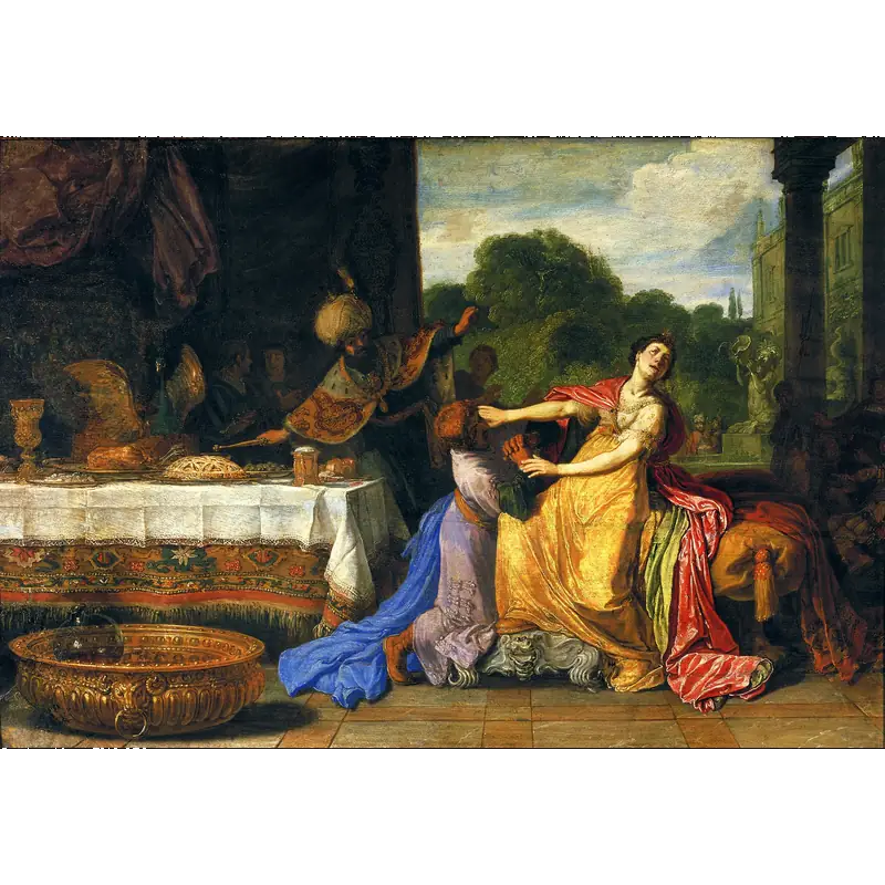 Haman Begging the Mercy of Esther, by Pieter Lastman