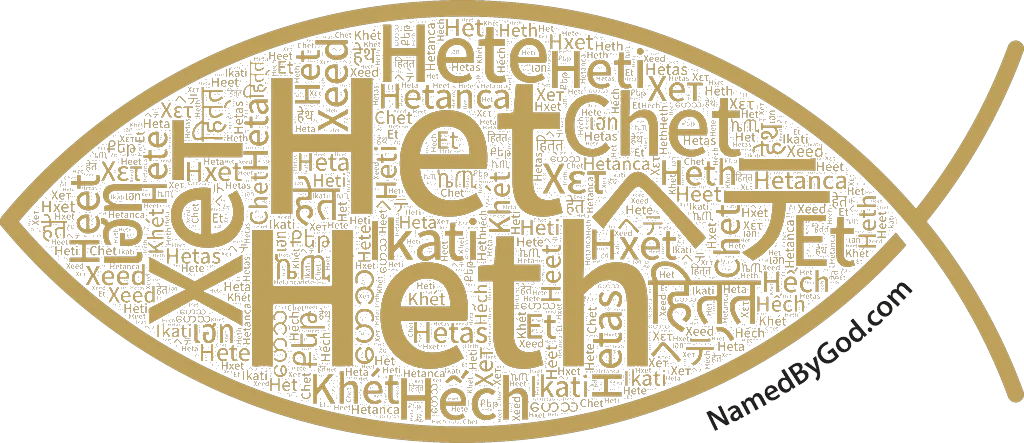 The name Heth holds a significant place in biblical etymology and history. Its meaning is often associated with the Hittites, a prominent group descended from Heth, as recorded in the Bible. The name itself is thought to mean 'Terror,' reflecting perhaps the formidable nature or reputation of the Hittite people in ancient times. Linguistically, Heth is rooted in Hebrew (חֵת), where it conveys its original connotation of awe or fear.