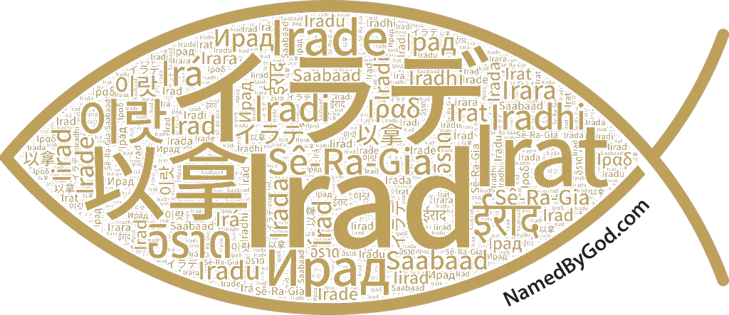 The name Irad originates from the Hebrew word 'irad, which is often interpreted to mean 'smitten by God.' This evocative meaning suggests a sense of divine intervention or connection, whether through judgment or blessing. Linguistically, the name is rooted in ancient Semitic traditions, reflecting the deeply spiritual context in which it was first used. Names with such meanings often carried immense weight in biblical times, serving as markers of identity and destiny.