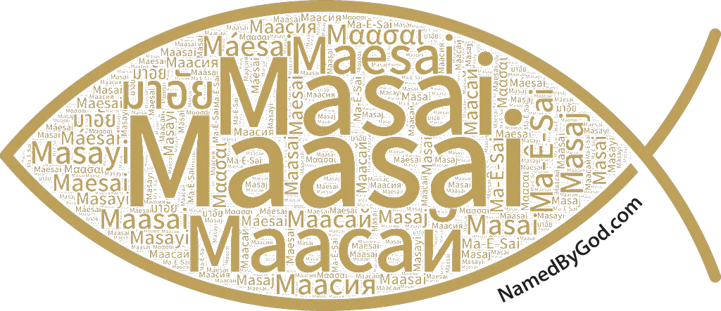 The name Maasai carries a profound spiritual meaning, translated as 'work of Jehovah.' Its roots lie in the Hebrew language, where it reflects the deep connection between human endeavor and divine purpose. The linguistic structure of the name suggests an active role in serving or fulfilling the will of God, emphasizing a life dedicated to divine service. Historically, names like Maasai were often given to signify a person's role within the religious or cultural framework of ancient Israel, highlighting their relationship with God as a central aspect of their identity.
