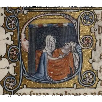 14th-century depiction of Abigail tending Nabal.