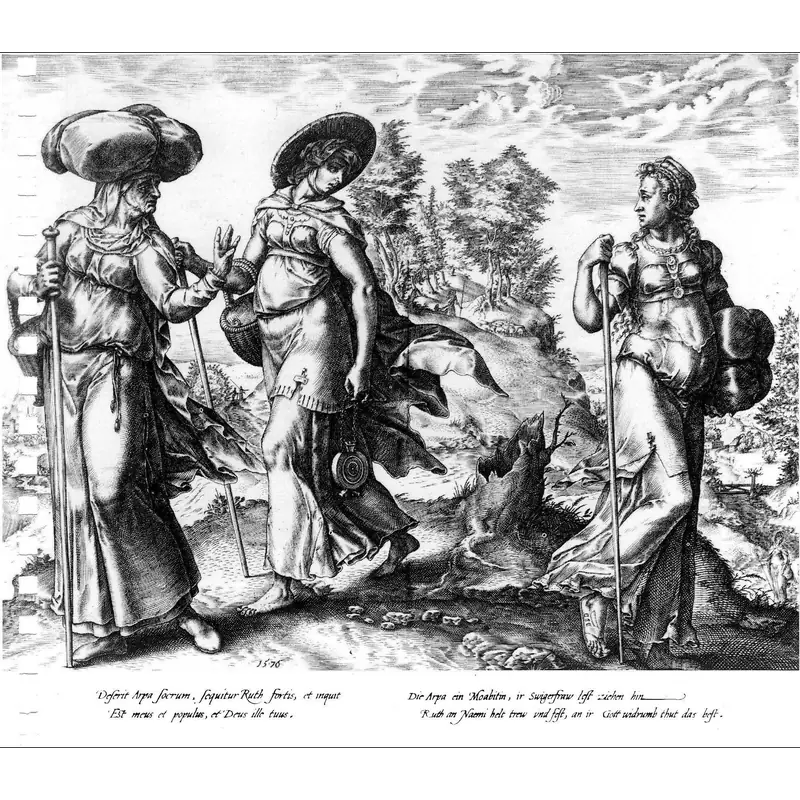Orpah (right) leaving Ruth and Naomi. Engraving by Hendrik Goltzius, 1576.
