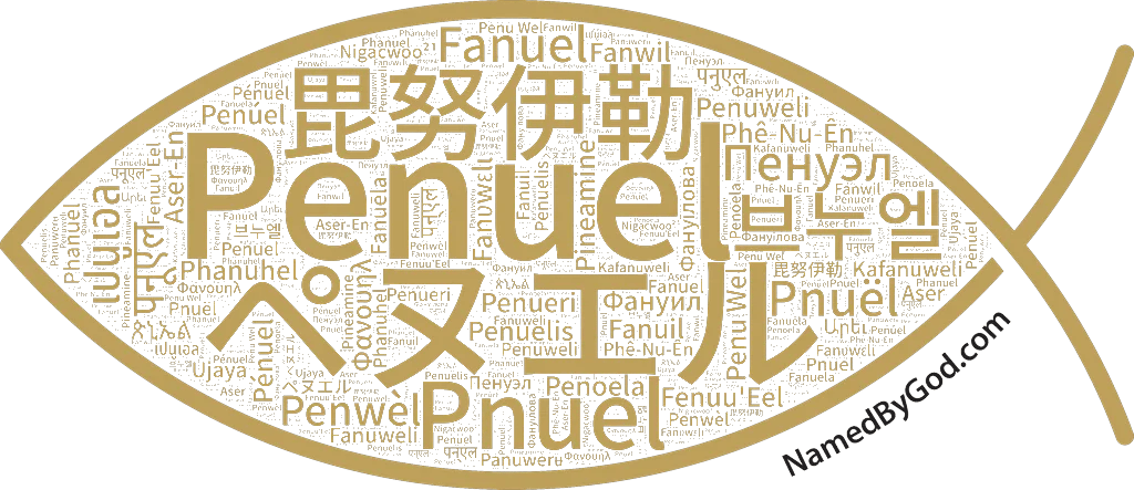 The name Penuel, sometimes rendered as Peniel, derives from the Hebrew roots panim (face) and El (God), collectively meaning 'face of God.' This etymology reflects the profound spiritual encounter associated with the name, suggesting an intimate proximity to the divine. Historically, it carries the weight of a moment when humanity and divinity intersected in a tangible way, as seen in the story of Jacob wrestling with God. The name’s linguistic roots underscore themes of revelation, divine presence, and transformation.