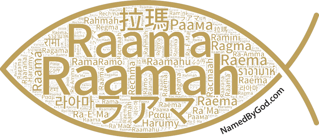 Raamah, derived from the Hebrew רַעְמָה (Raʿmh), carries the meaning of 'trembling,' and in some interpretations, 'lofty' or 'exalted.' Linguistically, the root of the name suggests a sense of awe or reverence, evoking imagery of thunder or divine power. Historically, Raamah is connected both to a person and a place, highlighting its dual significance in the biblical narrative. As a name found in the Torah, Raamah reflects the rich tapestry of ancient Semitic languages and cultures, where names often carried profound spiritual and symbolic meanings.