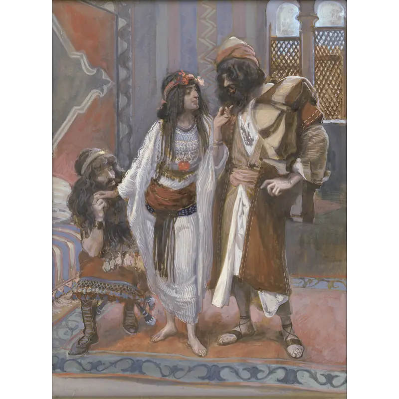 Rahab (center) in James Tissot's The Harlot of Jericho and the Two Spies.