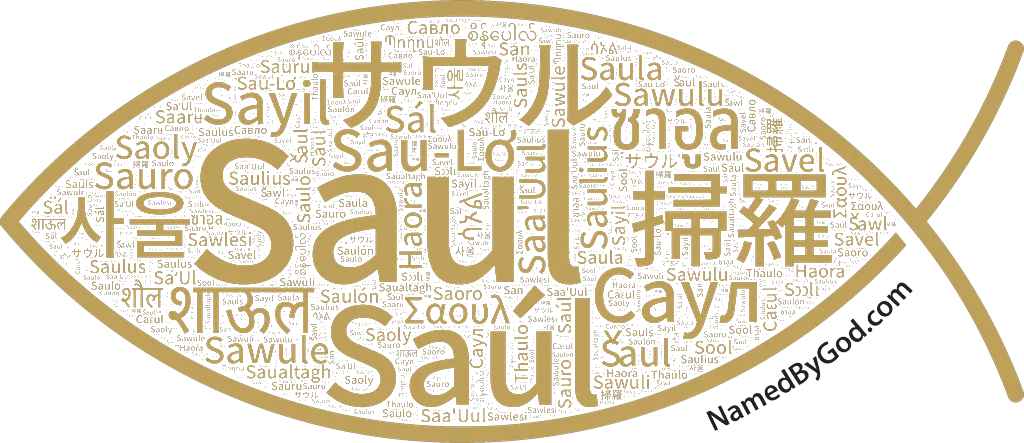 The name Saul originates from the Hebrew word "Sha'ul," meaning "asked" or "prayed for." This etymology reflects the act of petitioning or seeking something earnestly, often in the context of divine favor or intervention. In biblical times, names carried profound meanings that often defined the character or destiny of the individual, and Saul's name signifies a person who has been sought after or requested, particularly by God. The linguistic roots of Saul are firmly grounded in the Semitic languages, with its Hebrew origin emphasizing its connection to the Jewish tradition and the covenantal relationship between God and His people.
