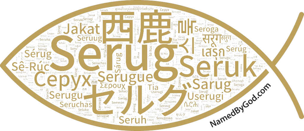 The name Serug (Hebrew: שְׂרוּג – Śərūḡ) carries the meaning of 'branch' or 'shoot,' symbolizing growth, connection, and continuity. Its linguistic roots are embedded in the Semitic tradition, where names often reflected natural elements or familial roles. In Greek transliteration, the name appears as Σερούχ (Seroúkh), preserving its phonetic essence across cultures. Historically, the name represents both a familial and spiritual lineage, serving as a bridge between the generations of Shem, the son of Noah, and Abraham, the father of many nations.