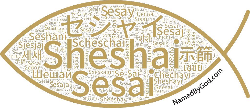 The name Sheshai, derived from the Biblical Hebrew שֵׁשַׁי (Šēšay), carries the meaning 'whitish.' This etymology reflects a descriptive quality, possibly indicative of physical appearance or symbolic purity. Linguistically, it aligns with other Semitic roots that often describe color or physical traits. Historically, Sheshai's name is tied to Hebron, a significant city in biblical narratives, and may represent a lineage or clan with distinct characteristics attributed to the Anakim, a race of giants mentioned in the Old Testament.